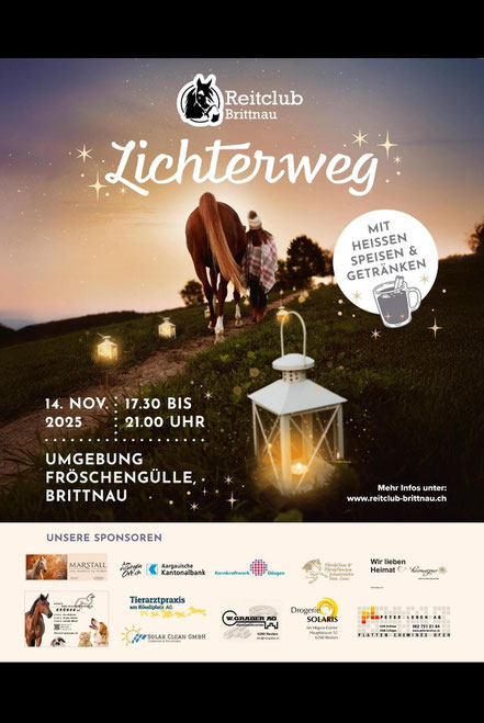 In der Fröschengülle, unserem vertrauten Reitgebiet, findet am 14. November 2025 ein stimmungsvoller Rundweg mit unzähligen Laternen statt. Es soll Jung und Alt, Familien,